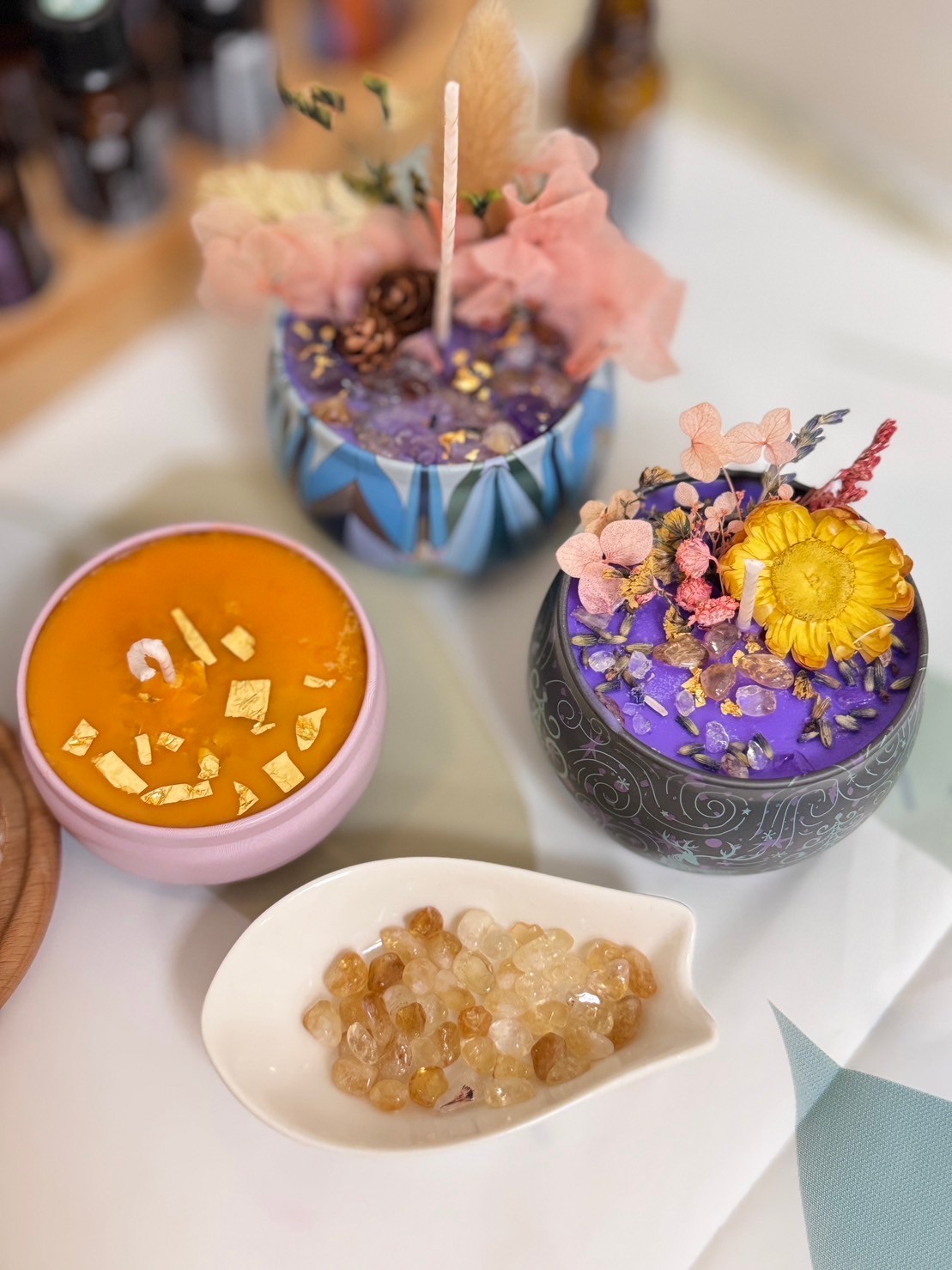 而藉由這個課程當場做的屬於補充自己能量屬性的魔法蠟燭,讓我在家裡燃燒此蠟燭時,真的心想事成!感謝老師